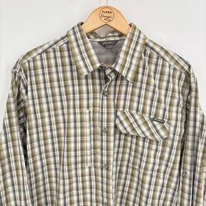Eddie Bauer Vented Long Sleeve Fishing Shirt Mens Lg Roll Tab Plaid Zip Pocket