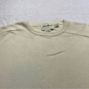 Eddie Bauer Very Pale Yellow Long Sleeve Crew Neck Knit Sweater Size Large. Excellent pre-owned condition. 100% cotton. Rib knit collar, cuffs and hem. Measures approximately chest 48", length 27", sleeve 26".