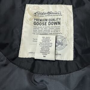 Eddie Bauer Vest Mens Medium Black Goose Down Outdoor Hiking Full Zip Puffer