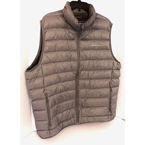 Eddie Bauer Vest Mn 2XL Gray 650 Down Quilted Puffer Lightweight Outdoor Preppy