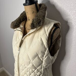 Eddie Bauer Vest Premium Goose Down Size M White Fur Trim Full Zip Puffer Gorp