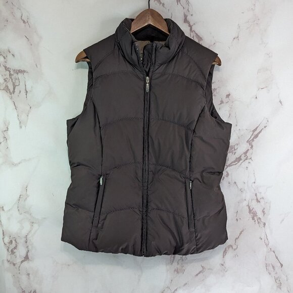 Eddie Bauer Vest Women Medium Brown Down Puffer Insulated Quilt Goose Chocolate