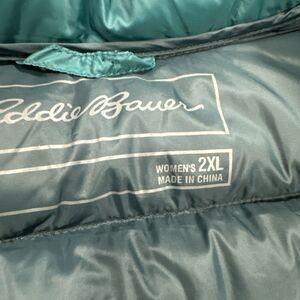 Eddie Bauer Vest Womens 2XL XXL Green Turquoise EB 650 Down Puffer Full Zip Up