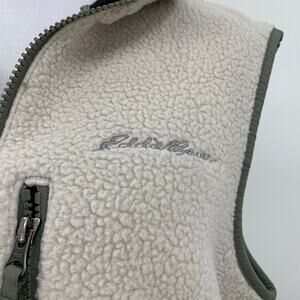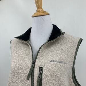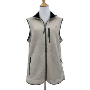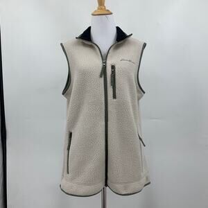 Eddie Bauer Vest Womens L Large Beige Ivy Sherpa Quest 300 Fleece Zip Up Jacket