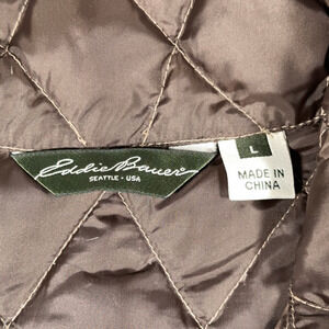 Eddie Bauer Vest Womens LARGE Brown Goose Down Quilted Puffer Barn Chore EB550