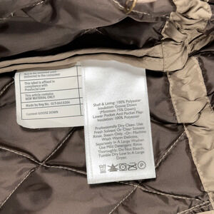 • Brown quilted vest with a polyester shell, polyester lining, and 550-fill-power goose down insulation