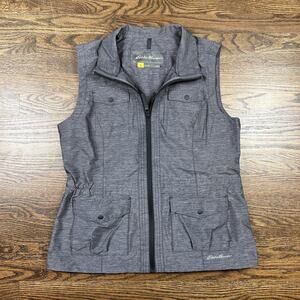 Eddie Bauer Vest Womens Large Gray Travex Utility Full Zip Pockets Travel Trail