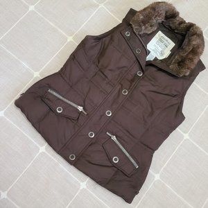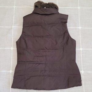 Eddie Bauer Vest size Small premium Goose Down Vest color brown faux fur removal
