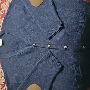 SUPERB condition, classic, nearly new, top quality, wool cardigan with 4 button, front pockets, elbow patch