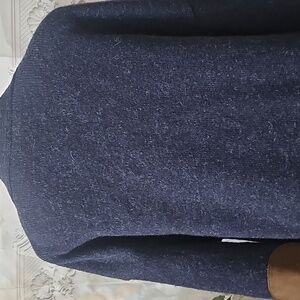 Eddie Bauer Vintage 100% Wool Blue Cardigan With Brown Elbow PatchesXXL