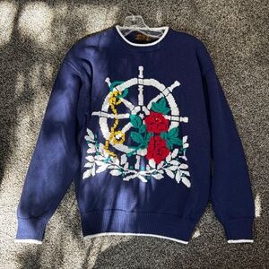 Eddie Bauer Vintage 90's Navy Nautical Ship Sailing Crew Neck Sweater Size L