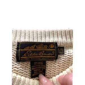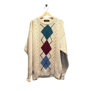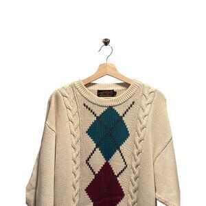 Eddie Bauer Vintage Argyle Pattern Crewneck Sweater Cream Size L Tall 90s Preppy