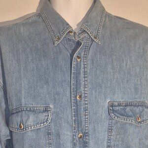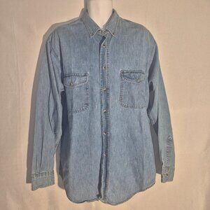 Eddie Bauer Vintage Blue Denim shirt button down collar in size Large