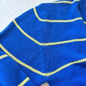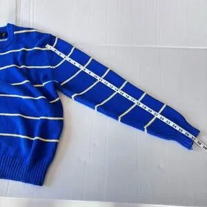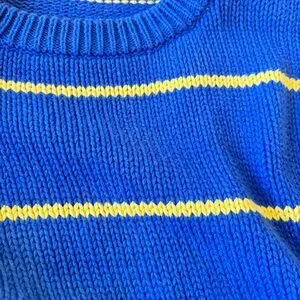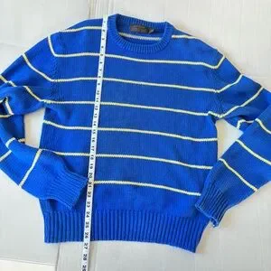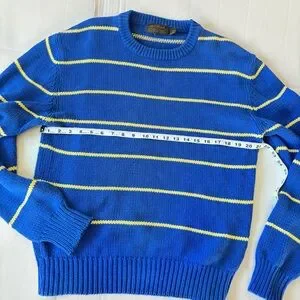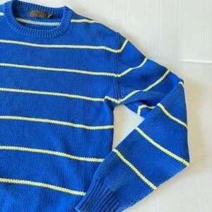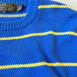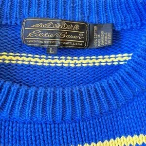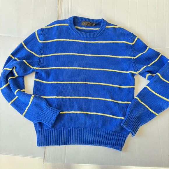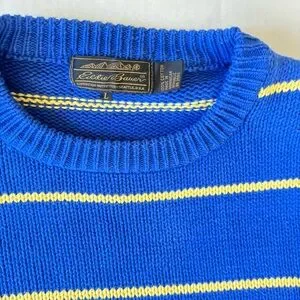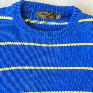 Eddie Bauer Vintage Cotton Crew Neck Sweater for Spring Blue yellow stripes! L