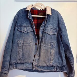 Eddie Bauer Vintage Denim Jacket with Red Plaid Lining