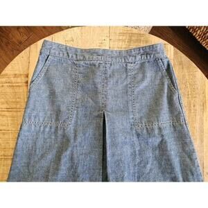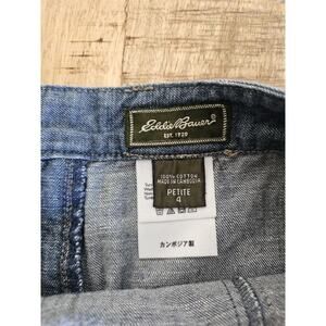 Eddie Bauer Vintage Denim Skirt Pockets Jean A-Line Inverted Pleated Size 4P