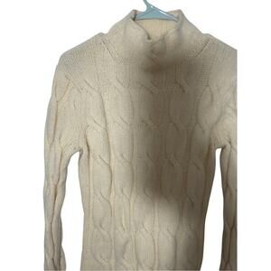 Eddie Bauer Vintage Fisherman Ribbed Lambswool Cream ModestTurtleneck SZ L