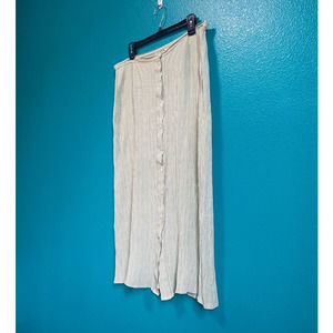 This beautiful vintage light green plaid crinkle skirt is made by Eddie Bauer. This skirt is midi length and has white buttons down the front. Can be styled in a variety of ways. This skirt is in good vintage condition with no visible flaws. 55% rayon, 45% acetate. Made in Thailand, women's size 16.