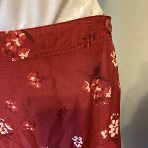 Eddie Bauer Vintage Linen Cotton FullWrap Maxi Skirt 14 Red Floral Modest Beach