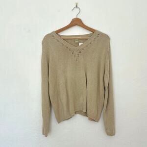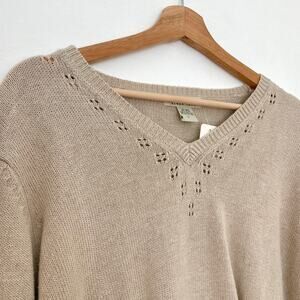 eddie bauer sweater, vintage knit top, oatmeal pullover, crochet detail sweater, eyelet knitwear, soft neutral sweater, 90s eddie bauer, breathable linen blend, minimalist layering piece, relaxed fit knit, slouchy sweater, coastal grandma sweater, warm tone pullover, vintage neutral top, transitional knit, cottagecore sweater, timeless layering piece