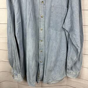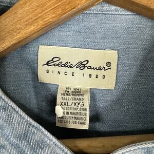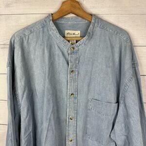 Eddie Bauer Vintage Mens size XXL Long Sleeve Denim Grandad Collar Denim Shirt