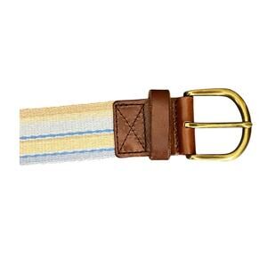 Eddie Bauer Vintage Pastel Spring Yellow Stripe Tan Leather Belt M 31"-35"