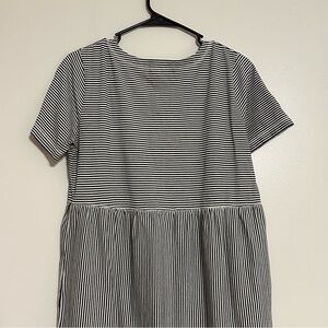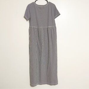 Eddie Bauer Vintage Tee Shirt Button Cotton Striped Short Sleeve Maxi Dress