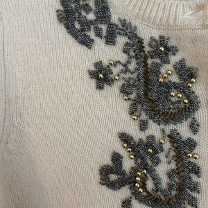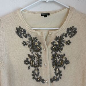 Eddie Bauer Vintage Women lambs wool silk blend pearl beaded cartigan sweater Medium