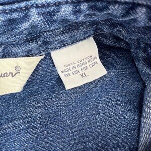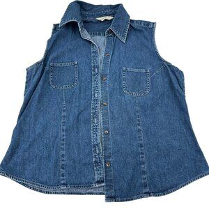 Eddie Bauer Vintage Women's Denim Sleeveless Blouse size XL Button Down Collared