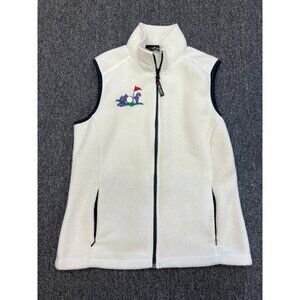 Eddie Bauer Womens White Polartec Pockets Full Zip Golf Fleece Vest Jacket Sz M