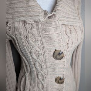 Eddie Bauer Vintage Y2K Beige Cream Chunky Big Collar Cable Knit Cardigan XS