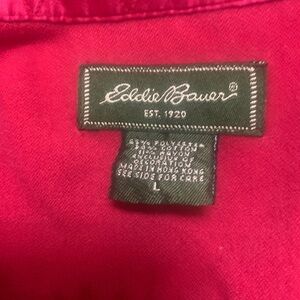 Eddie Bauer Vintage red shirt, buttoned down..size L..use for layering….Made in Hong Kong..quality construction..