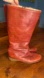 Very unique color — Rust (orange red brown) — the leather is in excellent condition as is the shearling lining