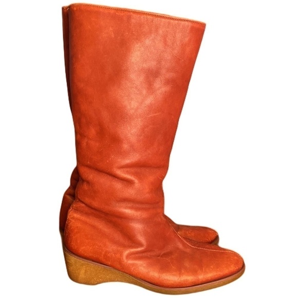 Eddie Bauer Vintage leather shearling winter tall boots wedge heel Sz 9 Rust