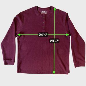 Eddie Bauer Waffle-Knit Henley Shirt Red Thermal Long-Sleeve