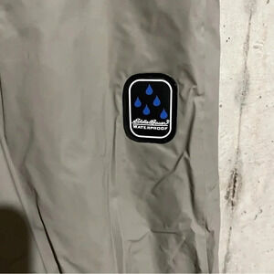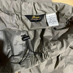 Eddie Bauer Waterproof Pants Mens L Beige Rain Over PVC Elastic Hunting Fishing