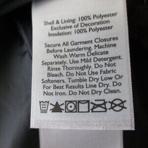 Covered front covered zip closure adjustable cuff closure, back collar contains a rolled hood, stows away in the back collar flat., front pockets, removable quilted lining