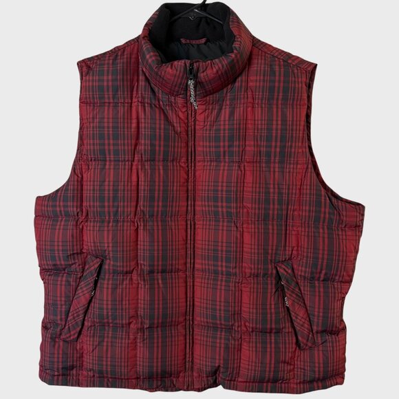 Eddie Bauer WeatherEdge Goose Down Plaid Puffer Vest Red Women's XL Outerwear