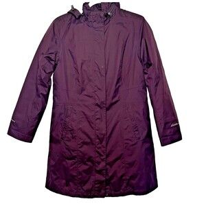 Eddie Bauer WeatherEdge Waterproof Long Coat Womens PM Purple Hooded Rain Jacket Lined