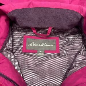 Eddie Bauer Weatheredge Magenta Pink Womens M Mesh Lined Full Zip Rain Jacket Pre-owned condition. Please note that the item has minimal stain on the sleeve magenta pink colorway, full zip closure embroidered spell out logo pockets 100% polyester lightweight outdoorsy hiking rain gear trekking gorpcore parka style jacket
