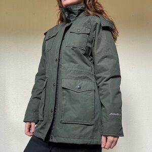 olive green, insulated jacket, utility style, pocket detail, outdoor wear, winter coat, waterproof, cargo jacket, warm outerwear, rugged