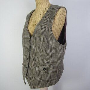 Eddie Bauer Women 18 Black Beige Houndstooth Plaid Wool Sleeveless Button Vest