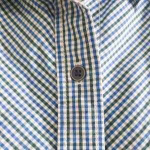 Eddie Bauer Women Button Down Shirt Sz M Blue/Green square long Sleeve. Regular Fit. Casual Plaid Print. No signs of wear. Excellent condition. No fading No holes . 19" chest, 24" sleeve length.