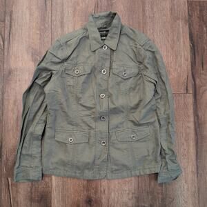 Eddie Bauer Women Large Utility Outdoor Button Up Canvas Field Chore Linen Blend