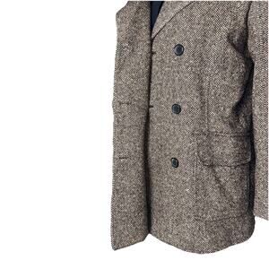 Eddie Bauer Women Medium Wool Pea Coat Double Breasted Tweed Black White Jacket