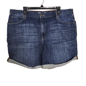 Eddie Bauer Women Shorts 18 Tall Blue Boyfriend Jean Denim Cuffed Cotton Stretch