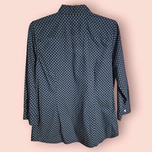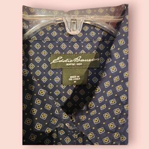 Eddie Bauer Women Top Size M Blue Button Up Long Sleeve 3/4 Geometric Shirt.