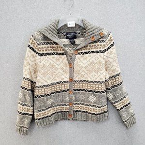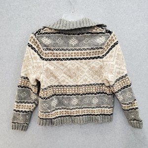 Eddie Bauer Women Sweater Medium Petite Beige Fair Isle Wool Blend VINTAGE
