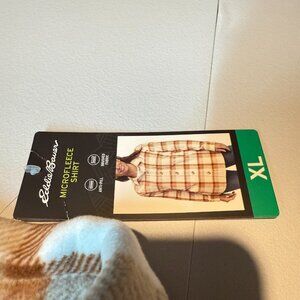 Eddie Bauer Women XL Fleece Shacket Shirt Jacket Buttons Brown Plaid Oversized