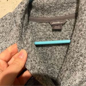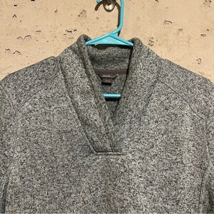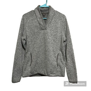 Eddie Bauer Women s Fleece V Neck Pullover Long Sleeve Grey Blue Heather Size L